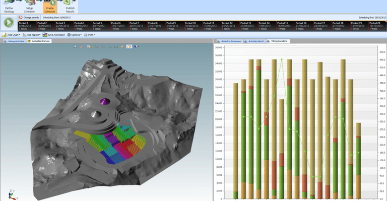 Perencanaan Tambang: Perangkat lunak ini menyediakan alat yang kuat untuk perencanaan tambang, termasuk desain pit, perencanaan penambangan, dan manajemen jadwal penambangan.